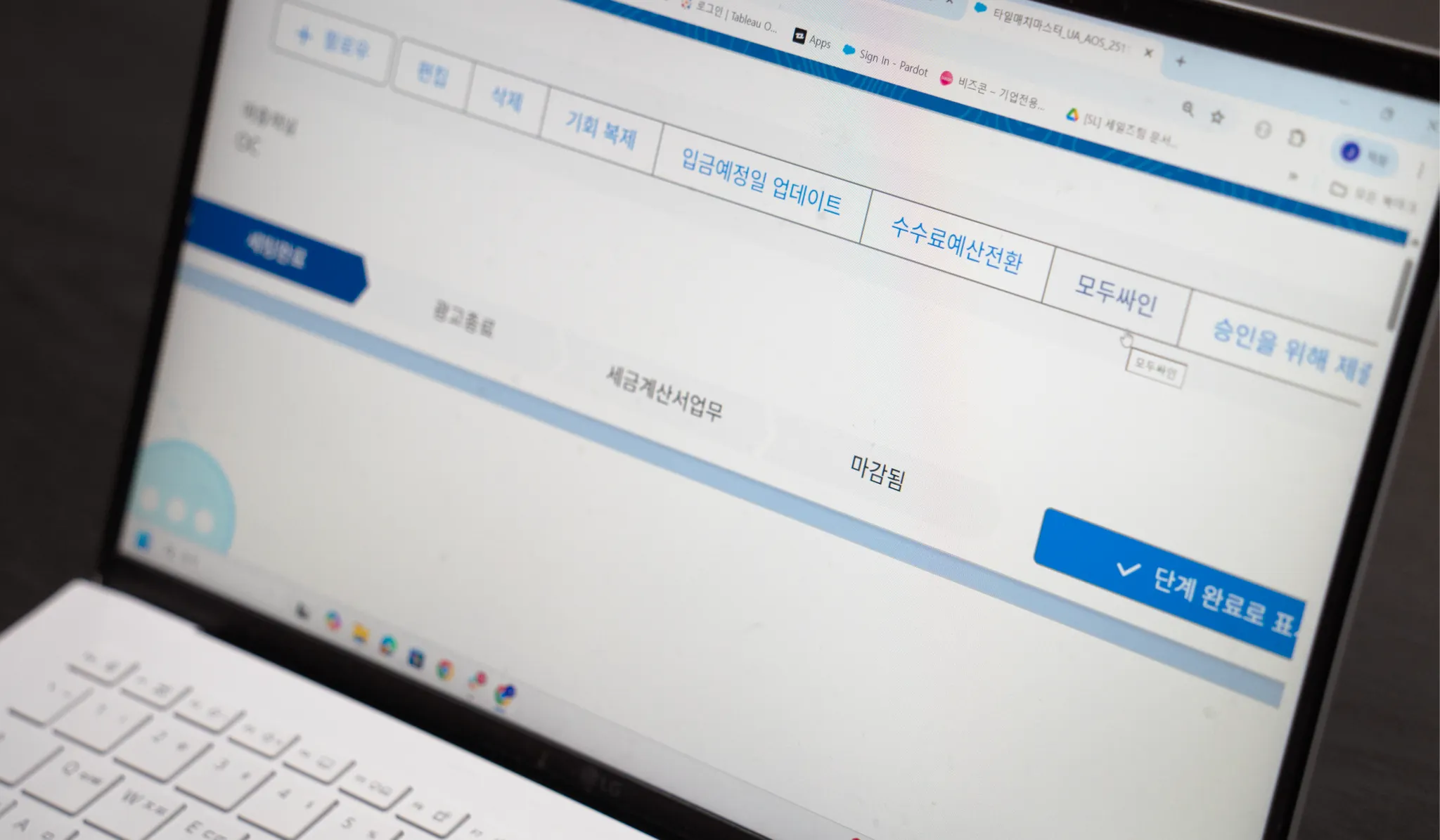 A. 세일즈포스 기회 페이지에 [모두싸인] 전자계약 버튼을 연결해두었습니다. 모두싸인 발송만 누르면 해당하는 데이터들이 바로 매칭이 되고 광고게재신청서 등의 문서가 발송됩니다. 세일즈포스에서 1개의 기회는 광고 계약 1개를 의미하는데요, 한 달에 많을 때에는 500개 이상을 다루기도 해, 버튼만 눌러서 문서를 발송할 수 있으니 정말 편리합니다.