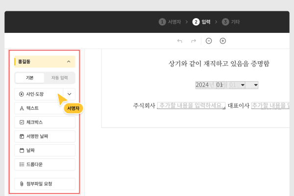 - A. 김성수 매니저님: ‘템플릿 기능’, ‘서명 요청 재알림’ 기능을 꼽을 수 있을 것 같습니다. 상대방 분들도 이메일이 쌓이니까 회신이 느려지는 경우가 있어서 재알림을 누르면 또 알림 보내고 기업 대표분들도 빠르게 확인하고 서명을 해주시죠. ‘맞춤 브랜딩’으로 저희 센터만의 디자인을 적용할 수 있는 점도 좋았습니다.