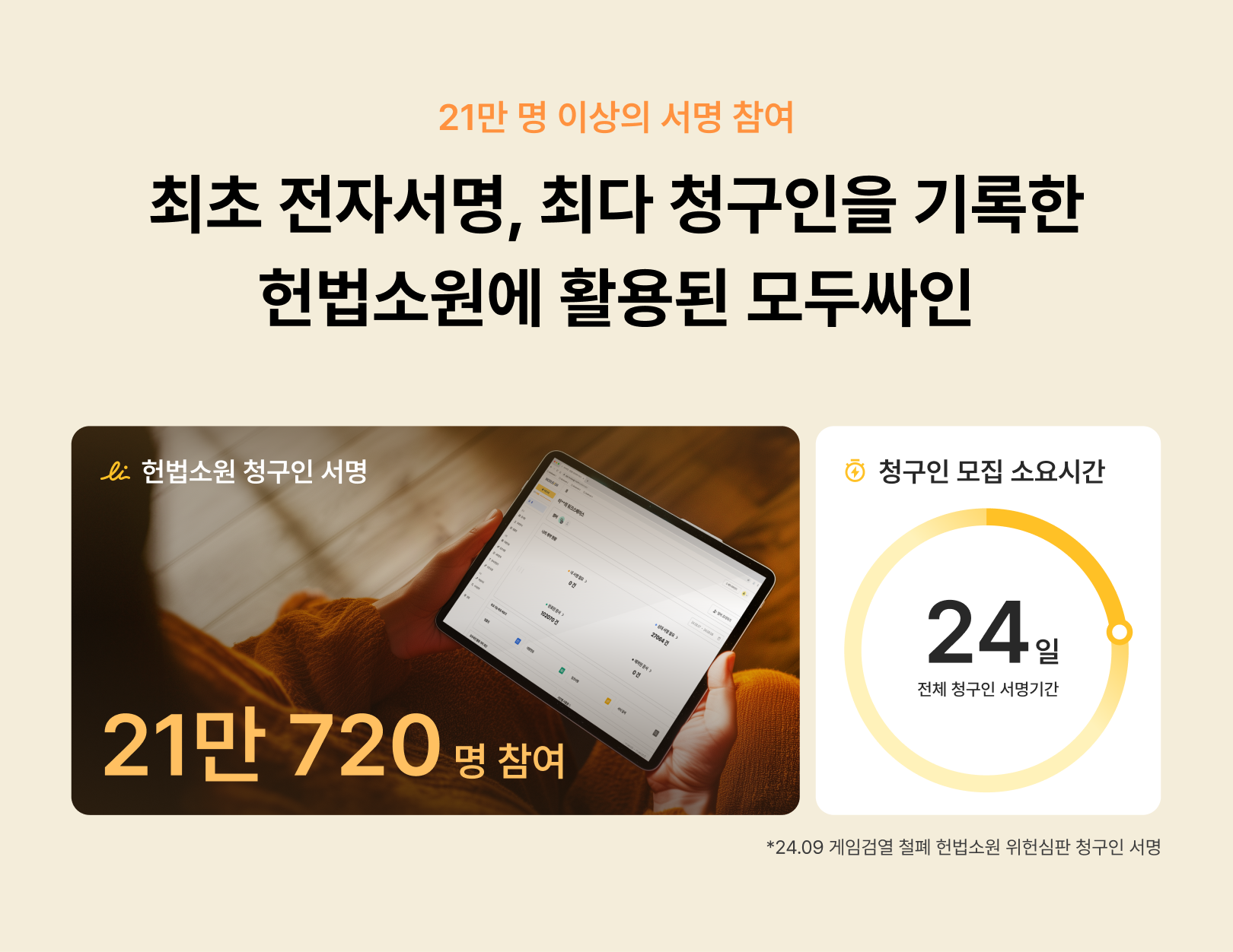 21만 명이 참여한 헌법소원도 모두싸인으로!