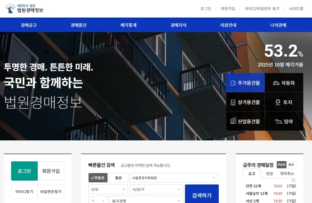 법원 경매 정보 사이트 등에서 공고된 물건을 확인하고, 직접 현장을 방문(임장)하여 물건의 상태와 주변 환경을 파악합니다.